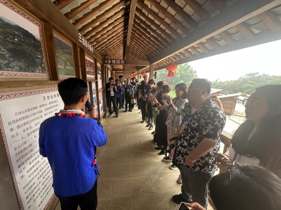 德宏州芒市三台山德昂族乡是中国唯一的德昂族乡,出冬瓜村便隶属于此。出冬瓜村始建于明、清时期,是传统的德昂族村落,村内至今仍保留着德昂族古朴原始的民居民风民俗,现有“水鼓舞”“达古达楞格莱标”“浇花节”“德昂族酸茶制作技艺”4个(中国)国家级非物质文化遗产名录。采访团一行来到出冬瓜村,访乡风传统、品德昂酸茶、看德昂水鼓舞、赏德昂织锦,感受中华优秀传统文化和非遗文化的独特魅力。三台山出冬瓜村“侨胞之家+为侨特色服务+农业文旅融合+以“托啊姆”调解室提升社会综合治理”的侨务创新工作也让大家啧啧称赞。