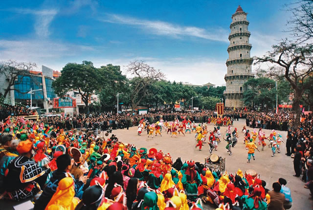 迎财神,放鞭炮,饮屠苏酒:正月初四迎财神,是中国各地的一项重要传统习俗,侨乡潮汕也不例外。虔诚的主妇们会彻夜不眠,从深夜子时到次日凌晨迎拜财神。财神有文财神和武财神之分,耕作读书人家一般拜文财神比干,走南闯北做生意的多拜武财神赵公明和关云长。按传统说法,腊月廿四诸神上天,人间的诸路神仙都上天“汇报工作”去了。但人们宁愿相信财神仍然不忘造福人间,会在这新春脚步来临之际将财气送到人间,所以各家各户要在这时候拜祭。于是,子夜钟响,鞭炮喧天,烟雾袅袅,仿佛是一团团祥云瑞气,再有那“财神到”的一声声吆喊声,更给这子夜增添了不少热闹。关于鞭炮,它原来是人们用来避邪祛灾的。宋王安石《元日》诗句:“爆竹声中一岁除,春风送暖入屠苏。千门万户曈曈日,总把新桃换旧符”。意思在燃烧竹子发出的爆裂声中,旧的一年已经逝去,和暖的春风吹来了新年,人们在欢声笑语中饮用着屠苏酒。初升的太阳照耀着千家万户,人们忙着把旧的桃符取下,换上新的桃符,意味着驱邪迎福。《荆楚岁时记》中则记载:“正月一日,是三元之日也,《春秋》谓之端月,鸡鸣而起,先于庭前爆竹,以辟山臊恶鬼。”西汉东方朔《神异经·西荒经》记载:西方深山中有人焉,身长尺余,袒身,捕虾蟹,性不畏人。见人止宿,暮依其火,以炙虾蟹。伺人不在,而盗人盐,以食虾蟹。名曰山臊,其音自叫。人尝以竹着火中,爆而出,臊皆惊惮。犯之令人寒热。此虽人形而变化,然亦鬼魅之类,今所在山中皆有之。东方朔所提的,即使有那么一回事,也恐怕只是一种动物而已,后代人以讹传讹,于是,爆竹便具有了避邪驱灾的功能。不过,随着落后意识的逐渐淡化,潮汕人放爆竹一俗,已经很少包含驱鬼成分,而仅仅是为节日增添欢乐气氛罢了。而伴随着现代文明的到来,许多大中小城市都开始在节日禁燃鞭炮了。