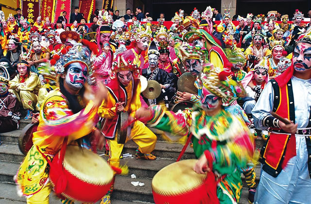 游神赛会,吃“七样羹”:上世纪80年代以前,侨乡潮汕大地四乡八里在春节期间都会有不少自发娱乐活动,潮汕地区濒临大海,潮汕人骨子里富有海洋冒险性格和敢于拼搏的精神,如游神赛会的民间习俗,汕头市澄海区盐鸿镇有“抢老爷”的民俗游神活动尤为彪悍刺激。每年农历正月廿二夜,当地会挑选出一群身体健壮的青壮年乡民赤膊上阵,上半身涂满香油,手持一大把燃烧的香烛边摔打,边护送老爷头像反复几次冲过划定区域,现场人山人海,气氛刺激火爆,中央电视台几年前曾经专门到现场进行录制拍摄。