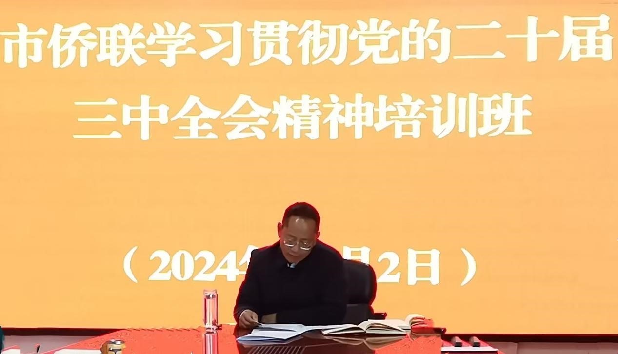 会议指出,本次培训班正值全党深入学习贯彻党的二十届三中全会精神之际,侨联系统总结全年工作、谋划明年思路之时,最主要的目的就是为了一体学习贯彻好三中全会精神和相关文件要求,扎实推动三中全会决策部署在侨联系统落地落实。侨联系统和侨联干部要提高政治站位,不断深化对“两个确立”决定性意义的认识,坚决做到“两个维护”,在学习贯彻三中全会精神中展现侨联新担当。一是把学习贯彻三中全会审议通过的《决定》,同学习领会习近平总书记的新思想、新观点、新论断结合起来,深刻领悟其中强烈的历史主动、坚定的守正创新、系统的战略布局、深邃的世界眼光,自觉将其作为进一步全面深化改革的科学指南。二是深刻认识三中全会作出的重大部署、取得的重要成果,事关党和国家事业前进方向,事关改革开放和现代化建设全局,对于激励全党全国各族人民凝心聚力、奋发进取,以中国式现代化全面推进强国建设、民族复兴伟业,具有重大而深远的意义。三是深入研究《决定》提出的“发挥工会、共青团、妇联等群团组织联系服务群众的桥梁纽带作用”、“完善港澳台和侨务工作机制”等表述,准确把握侨联深化改革工作的结合点、切入点和着力点,搞清楚改革针对的是什么问题,关键点在哪里,研究制定符合实际、解决问题、实操性强的落实举措。