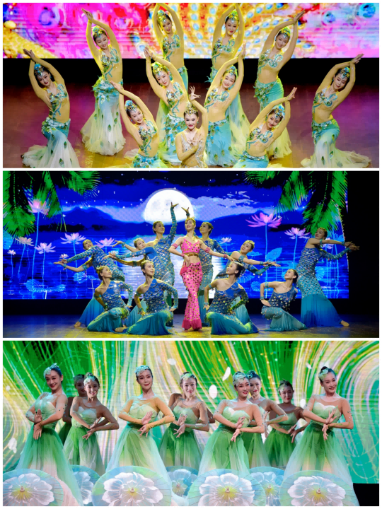 当晚7时许,在悠扬的《茉莉花开》乐曲中,演出正式拉开帷幕。歌曲《牵手》道出祖国与侨胞“山海不为远,千里心相连”的深厚情谊,舞蹈《吉祥孔雀》仿佛带领观众走近一群翩然的美丽精灵,魔术《东方色彩》则将东方神韵与现代魔术魅力巧妙融合……约两小时的演出期间,阵阵掌声、喝彩声此起彼伏。