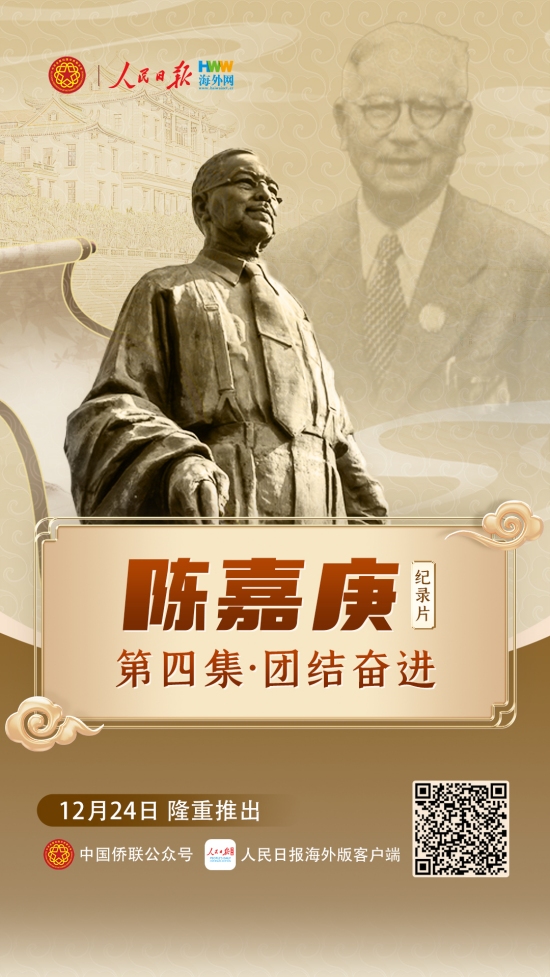 今年是陈嘉庚先生诞辰150周年,为深入学习贯彻习近平总书记2014年给厦门集美校友总会的重要回信精神,弘扬新时代嘉庚精神,激发侨心向党、团结奋斗的强大力量,指导人民日报海外网拍摄制作了四集纪录片《陈嘉庚》。第四集《团结奋进》讲述了弘扬新时代嘉庚精神,团结凝聚侨心侨智侨力同圆共享中国梦的探索和实践。