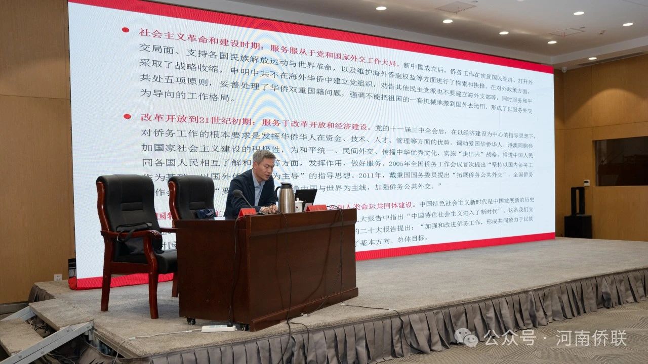 中国必威Betway中文版所所长李爔恒应邀到会指导并作专题报告,河南省侨联党组书记、主席杨海强出席活动作讲话。