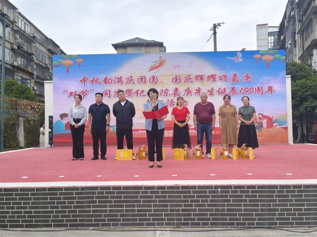 襄阳市襄城区侨联在铁佛寺社区群众文化大舞台开展“双节”同庆暨纪念陈嘉庚先生诞辰150 周年专题活动。侨联干部精心策划、侨界群众广泛参与,编排了诗朗诵、舞蹈、戏剧、合唱以及视频祝福等多种形式的节目,穿插进行了射箭比赛和古诗词接龙等观众互动环节,全面展现了侨界群众对家乡的热爱、对美好生活的向往和同心共筑中国梦的强大力量。