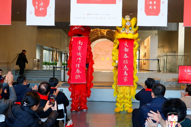 此次活动邀请国家级非遗南京白局省级传承人黄玲玲、中国首位古龠演奏非遗传承人于东波等,联袂呈现多个精彩节目。王立平、俞律等12位代表南京文化形象的名家,融合非遗春节、明城墙申遗、金陵金箔三大元素,联袂书写春贴,独特的创意视角将春帖这一非遗符号与现代生活巧妙融合,不仅丰富了南京城市文化的内涵,更让这一传统年俗焕发出新的生机与活力,为即将到来的新春佳节增添了一抹独特的文化色彩。