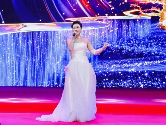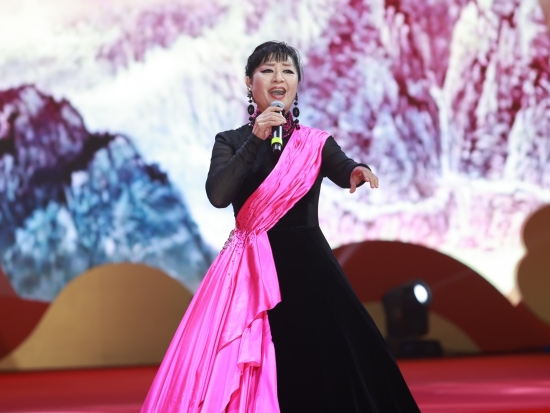 演出最后,在全场观众翘首以待中,中国著名女高音歌唱家、国家一级演员殷秀梅登场,她以雄浑大气的嗓音演唱《长江之歌》《一杯美酒》《在希望的田野上》,将演出推向了高潮。她的歌声深情而豪迈,展现了对祖国家乡的热爱、对美好生活的歌颂,让现场的每一位观众都深深陶醉在这动人的歌声里,沉浸在艺术的海洋中,为这场精彩纷呈的演出画上了圆满的句号 。