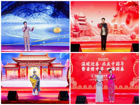北京歌舞剧院国家一级演员金响带来经典歌曲《大中国》《爱你一万年》,极具感染力的嗓音,引发全场观众的合唱,表达侨胞们对祖(籍)国的热爱。中国东方演艺集团于海洋深情演绎《节日快乐》《想家的时候》,用温暖的歌声传递出思乡的情感和节日的祝福。中国煤矿文工团赵越献唱《在那遥远的地方》《灯火里的中国》,用歌声描绘苍茫辽阔的家乡故土,勾勒万家灯火的盛世图景。中国煤矿文工团国家一级演员左炜带来《我的中国心》《青春舞曲》,熟悉的旋律和热情的演唱点燃现场气氛。