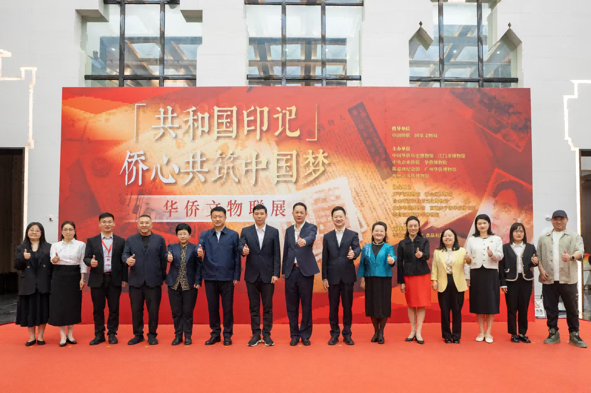4月8日,在和国家文物局的指导下,由中国华侨历史博物馆、江门市博物馆等七家涉侨博物馆共同主办的“共和国印记——侨心共筑中国梦”华侨文物联展在中国侨都华侨华人博物馆(以下简称“侨博馆”)开幕。广东省侨联党组书记、主席李丰,中国华侨历史博物馆副馆长(主持工作)宁一,广东省侨联副主席钟日升,江门市委常委、宣传部部长陈冀,江门市副市长夏天等领导嘉宾出席开幕式。