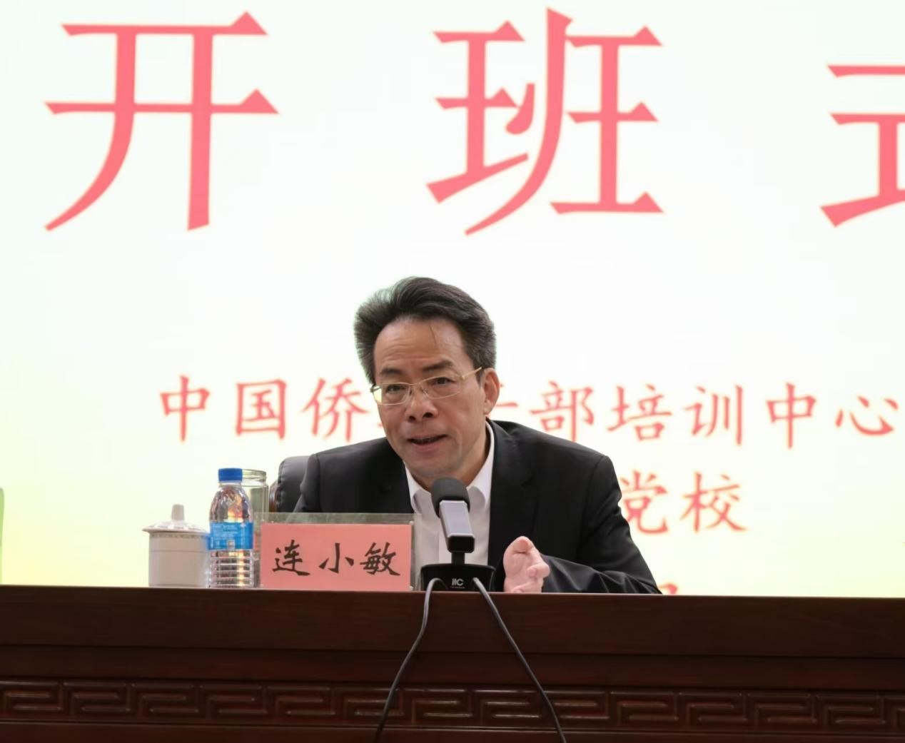 连小敏代表和万立骏主席,向各位学员致以亲切问候和诚挚欢迎。他表示,这期培训班的主要任务是深入学习习近平总书记最新重要讲话精神,提升侨联干部政治素养、理论水平和工作能力,推动侨联系统扎实开展深入贯彻中央八项规定精神学习教育,进一步全面深化改革,为推进中国式现代化作出侨界新贡献。