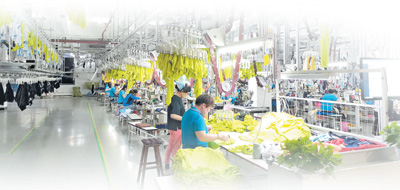 福建泉州鹏泰服饰有限公司生产车间。 赵文宏摄 |