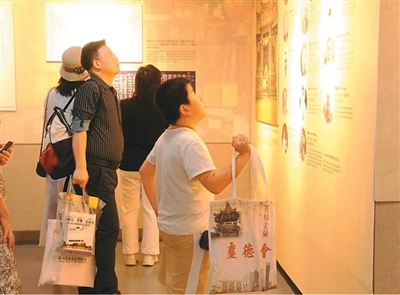 观众在参观新加坡庆德会故事专题展览。 泉州华侨历史博物馆供图 |