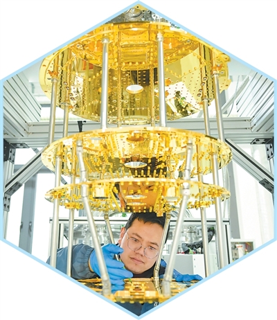 安徽合肥一家科技公司的技术人员在安装稀释制冷机的换热组件。 刘玉才摄(影像中国) |