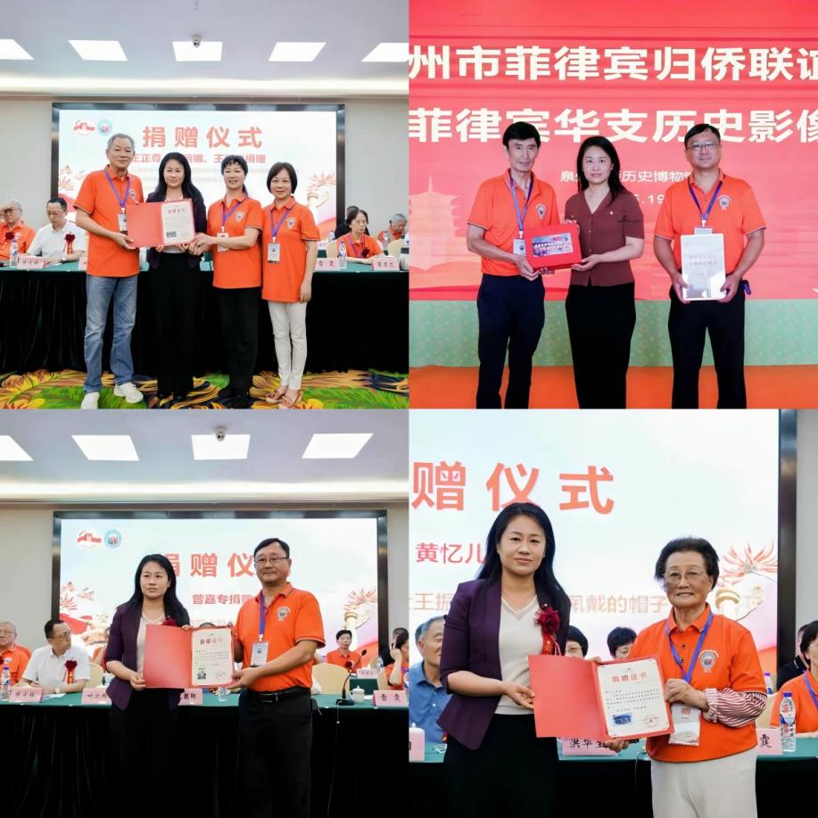 2025年5月19日,“纪念抗日战争胜利80周年暨菲律宾华侨抗日游击支队成立83周年”主题活动在泉州华侨大厦隆重举行,中国华侨历史博物馆副馆长雷霆出席活动,代表侨博接受北京菲律宾归侨联谊会等捐赠团体和个人捐赠的17件/套菲律宾华侨支持世界反法西斯战争的相关实物资料,并向各捐赠代表颁发捐赠证书。