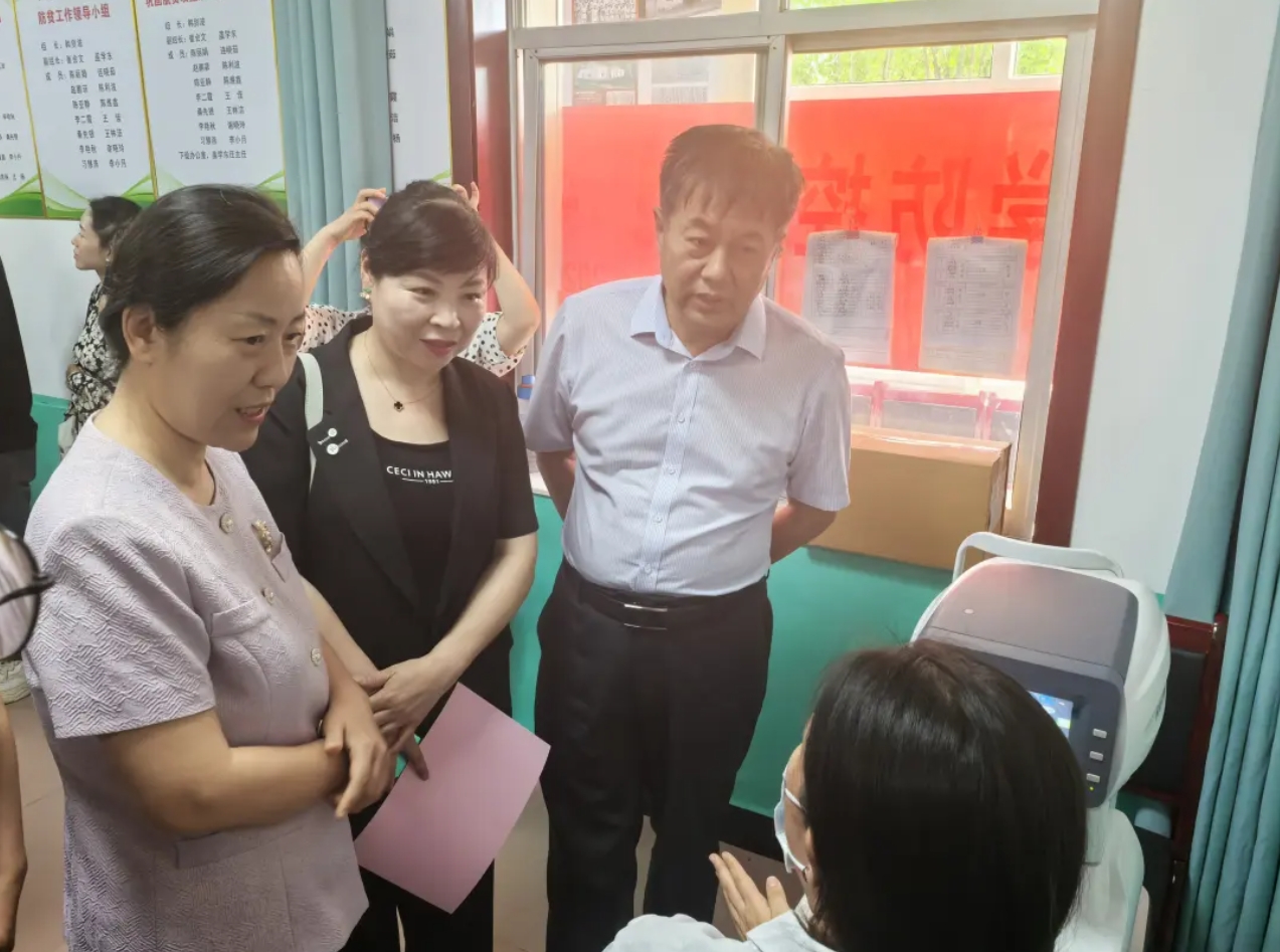 启动仪式后,刘景春一行深入现场考察,与医疗队成员亲切交流,详细了解视力筛查流程和服务开展情况,并与学生们互动,询问他们对活动的感受,鼓励孩子们重视眼健康,养成科学用眼的好习惯。