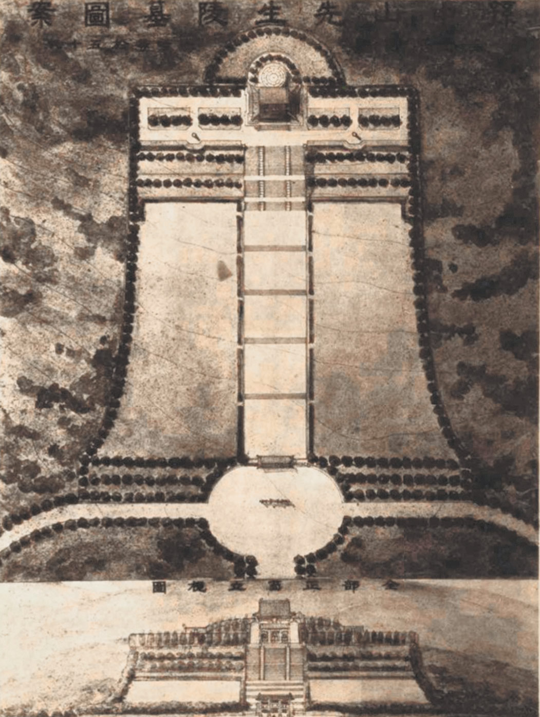 拔得头筹的是时年31岁,由清华学堂留美预备部公费赴美,毕业于康奈尔大学的吕彦直,他与获得第三名的杨锡宗同为康奈尔大学建筑系的同学。吕彦直设计的中山陵独具特色,除一位评委将吕的设计列为第二名外,其余评委一致推举头奖。在1925年出版的《孙中山先生陵墓图案》一书中,评委之一的凌鸿勋如此评价:“此案全体结构简朴浑厚,最适合于陵墓之性质及地势之情形。且全部平面作钟形,尤有木铎警示之想。”100年后的今天,树木繁茂的中山陵的钟形设计已掩映在自然之中,与孙中山先生热爱的南京紫金山融为一体,但细看当初的设计图和建成图,钟形的设计还是相当明显的。