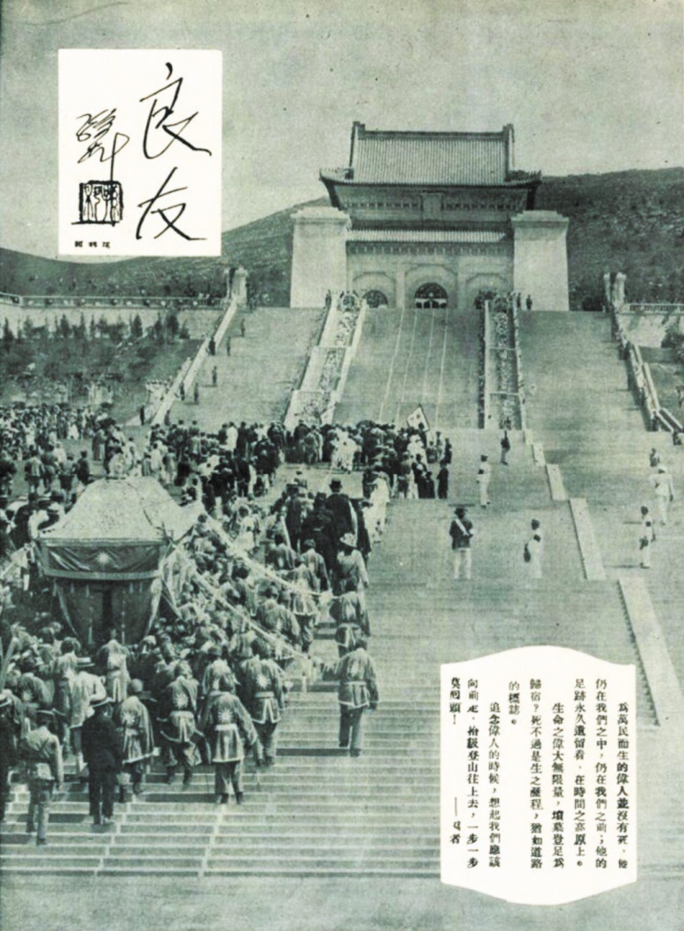 6月1日,孙中山先生奉安大典在南京紫金山举行。当天4时15分,狮子山炮台鸣礼炮101响后,灵榇被移出大门,由杠夫抬上汽车,4时25分,灵车启动。特勤总管黄仁霖在其回忆录中写道:“从中央党部到中山陵脚下,共有7英里,送葬行列,必须步行这一段距离。”奉安总干事孔祥熙骑着白马带领包括黄仁霖在内的三名青年军官,引导队伍前行,沿途瞻仰的南京民众不下三十万人,皆肃立脱帽致敬。上午9时20分,灵车抵达中山陵,停车换杠,9时45分,64名杠夫抬着灵榇步石级而上,孙中山夫人宋庆龄率领亲属在布幔内随护灵榇。10时15分,正式举行奉安典礼。12时整,由宋庆龄、孙科等中山先生的亲属将墓门关闭,奉安典礼正式结束。我想找一张较为清晰的奉安大典的照片,然时间久远,所存图片大多模糊不清,费时良久,终于发现1929年7月出版的第三十七期《良友》杂志的卷首语所用照片颇为清晰,在此与读者分享。