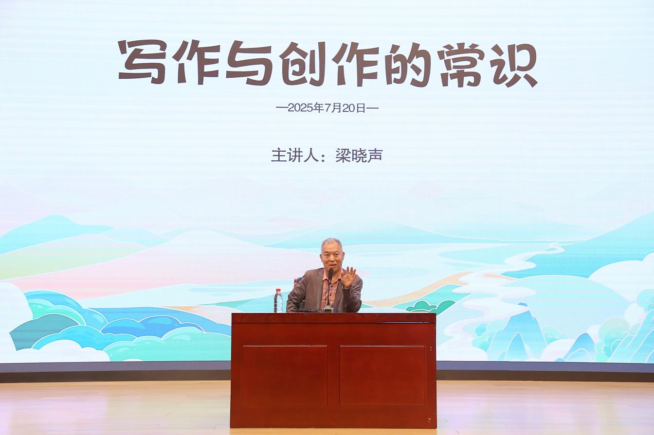 颁奖典礼最后,著名作家梁晓声先生为在场全体人员带来一场精彩的讲座——“写作与创作的常识”,这也是2025“亲情中华·中国寻根之旅”夏令营作文大赛主题营的第一课。他结合自身创作经历和当代社会发展的趋势,分享文学之于文化、之于时代、之于青年的深远意义,鼓励学子树立自觉向上的勇气和人生态度,观照当代中国和现实生活,努力成为优秀的创作者。