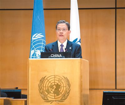 7月29日至31日,第六次世界议长大会在瑞士日内瓦万国宫举行。全国人大常委会委员长赵乐际出席大会。这是7月29日,赵乐际作题为《坚持多边主义,共建美好家园》的发言。新华社记者 李 涛摄
