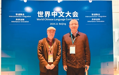 二〇二四年,吴宪(左)在北京参加世界中文大会。