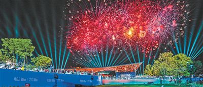 图为闭幕式上的焰火表演。新华社记者 谢剑飞摄