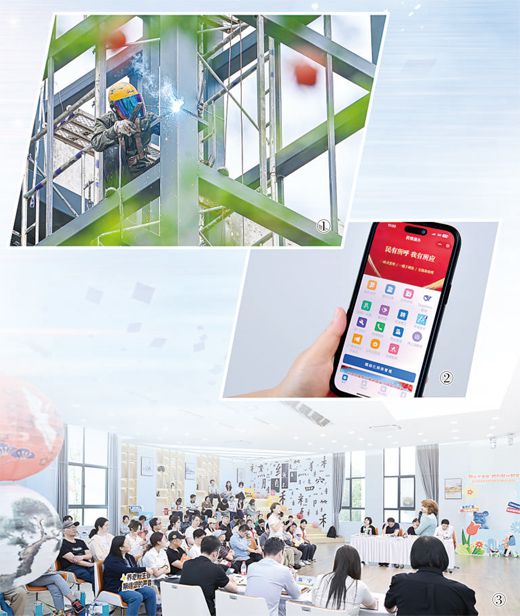 图①:江西省赣州市章贡区通过“线上+线下”征集意见建议,将加装电梯等事项纳入民生实事清单。图为当地施工人员为老旧小区加装电梯。胡江涛摄(人民视觉)