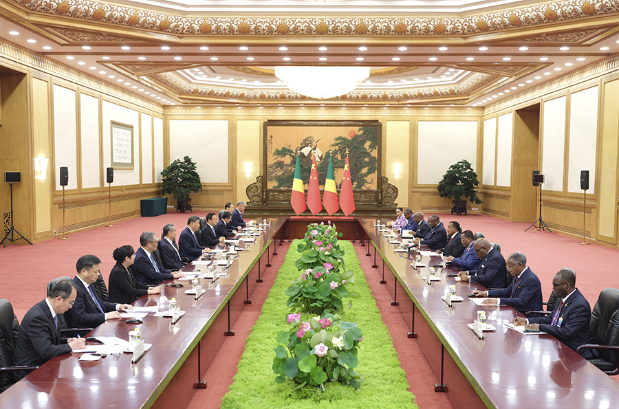 新华社北京9月4日电(记者曹嘉玥、黄扬)9月4日中午,国家主席习近平在北京人民大会堂会见来华出席纪念中国人民抗日战争暨世界反法西斯战争胜利80周年活动的刚果(布)总统萨苏。两国元首宣布将双边关系定位提升为中刚高水平命运共同体。