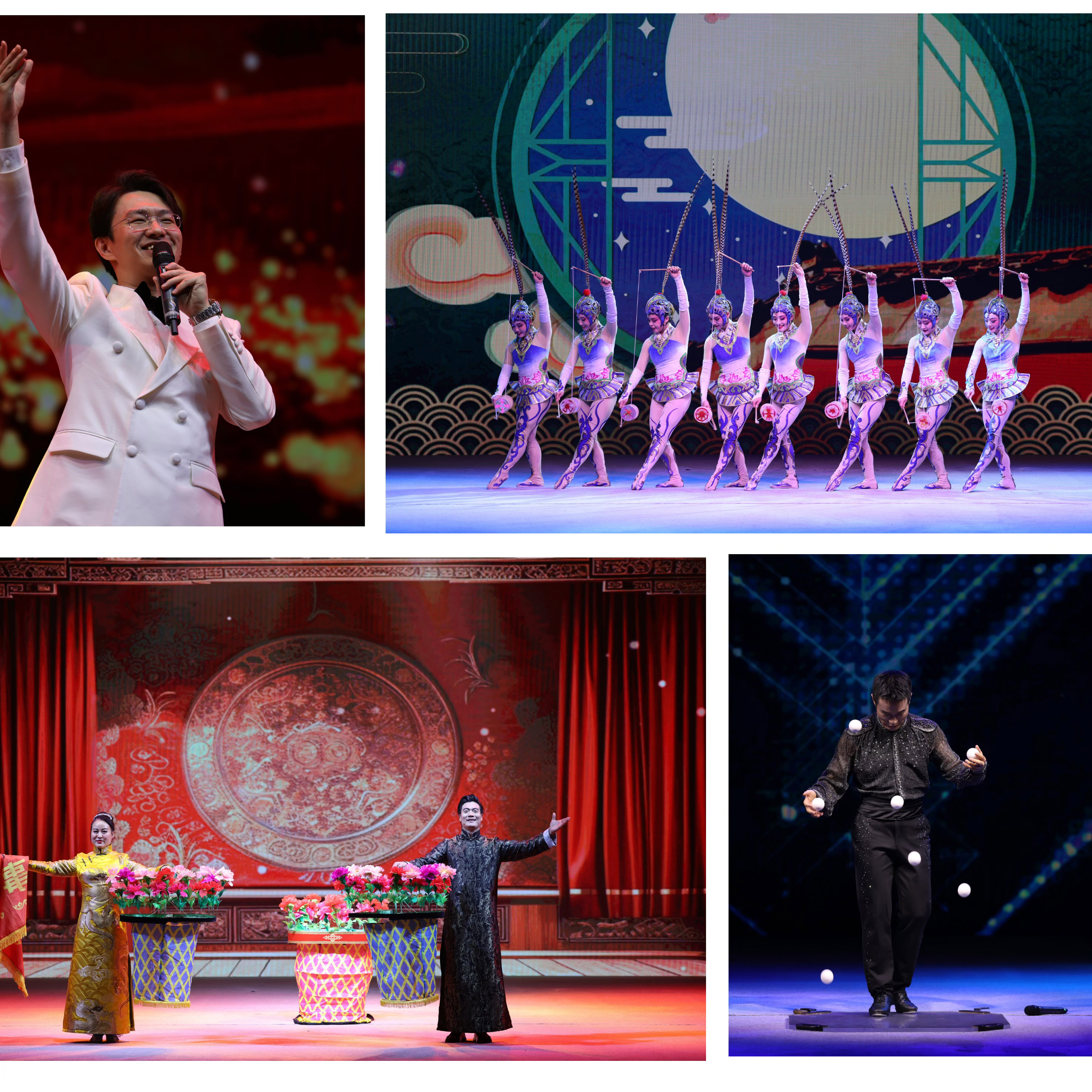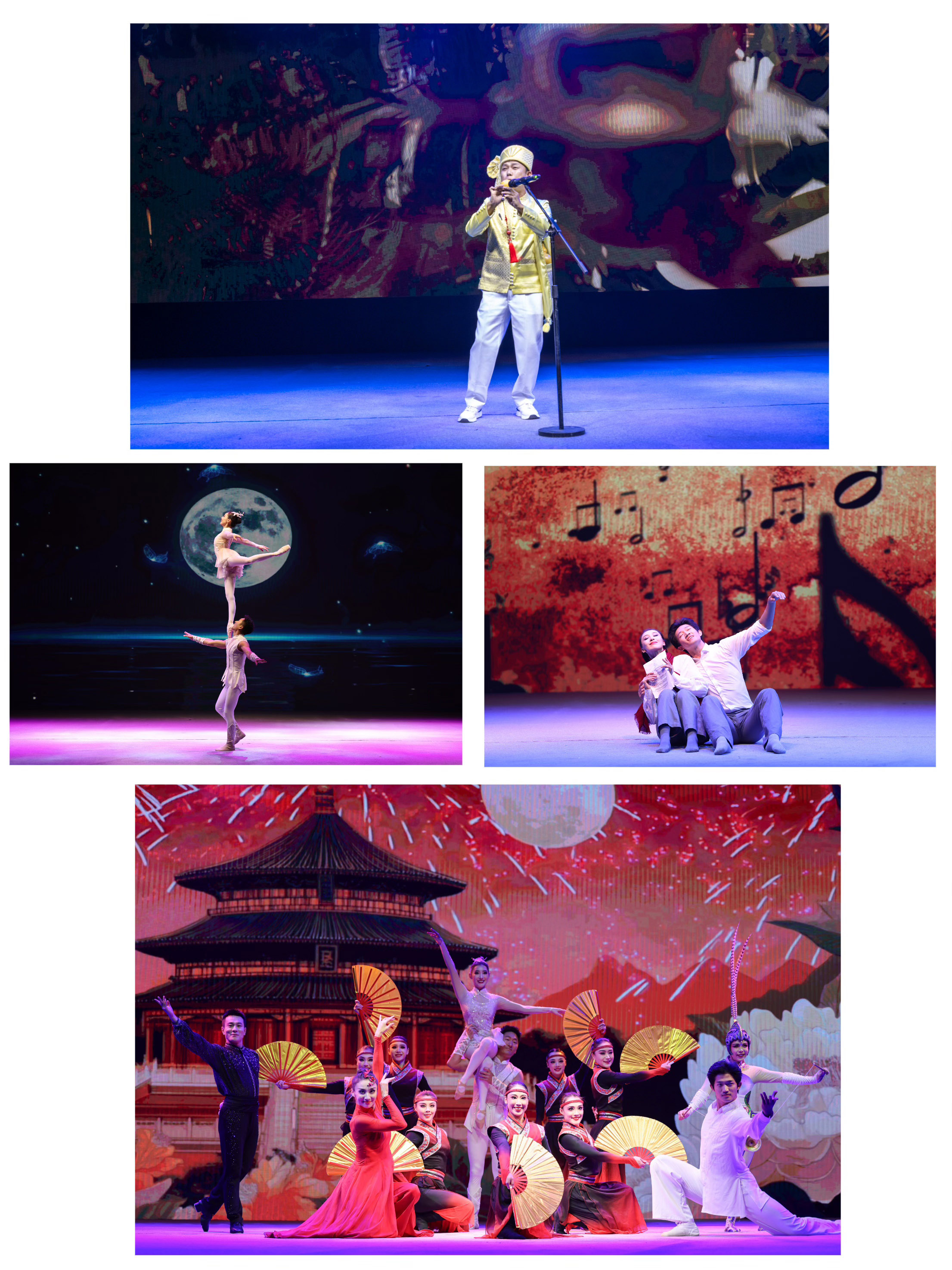 河北梆子《穆桂英挂帅》选段折射戏曲艺术魅力,葫芦丝独奏《欢乐的泼水节》呈现民族文化风采,节目《锦绣华章》、杂技《邀月弄影—肩上芭蕾》等具有东方雅韵,给现场观众留下深刻印象。