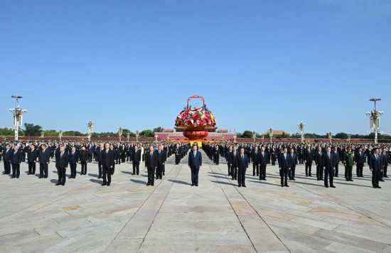 9月30日上午,党和国家领导人习近平、李强、赵乐际、王沪宁、蔡奇、丁薛祥、李希、韩正等来到北京天安门广场,出席烈士纪念日向人民英雄敬献花篮仪式。新华社记者 李响 摄