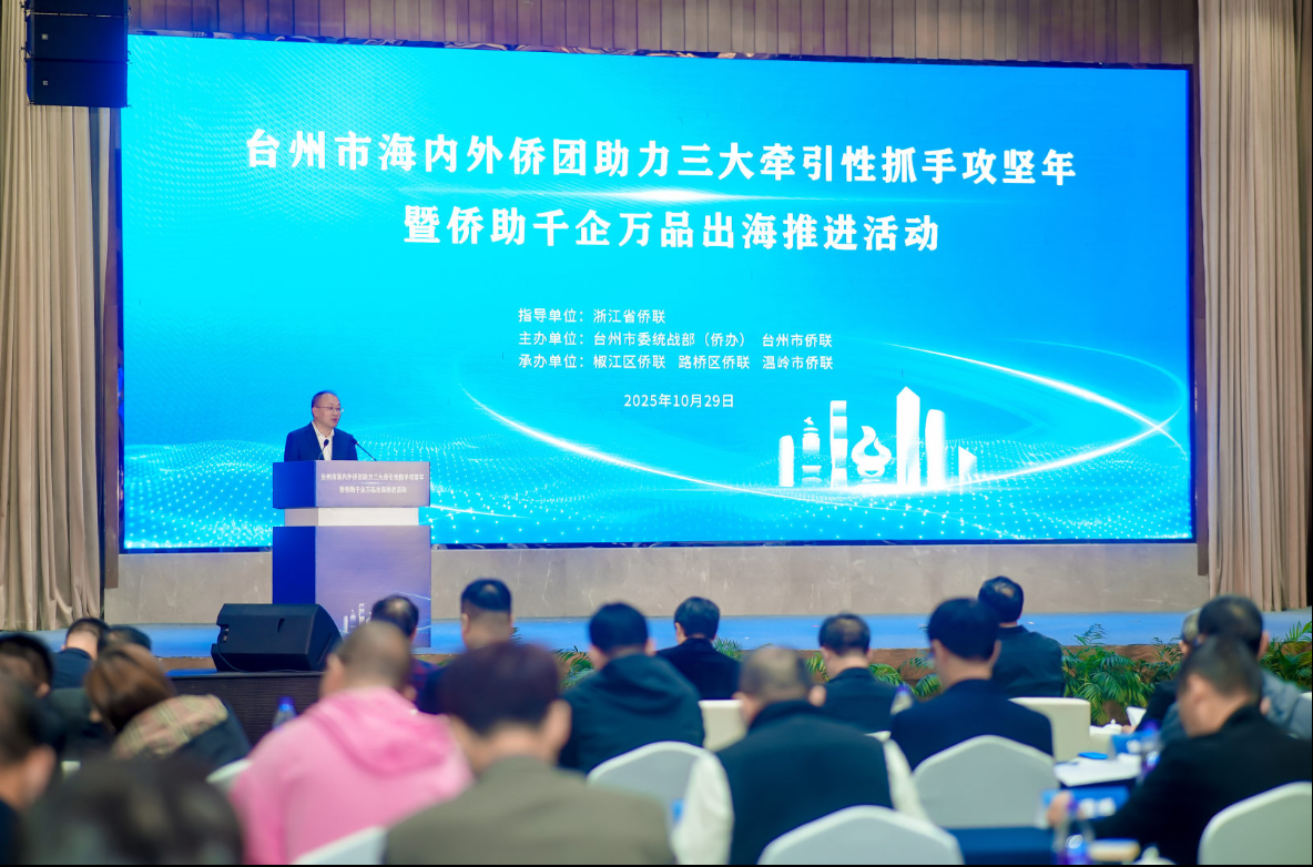 10月29日,台州市海内外侨团助力三大牵引性抓手攻坚年暨侨助千企万品出海推进活动隆重举行。经济科技部副部长祁德贵,台州市委常委、统战部部长苗文斌出席活动并致辞。台州市有关部门代表以及海内外侨团负责人、台州市侨商会代表、台州市留联会代表等100余人参加活动。
