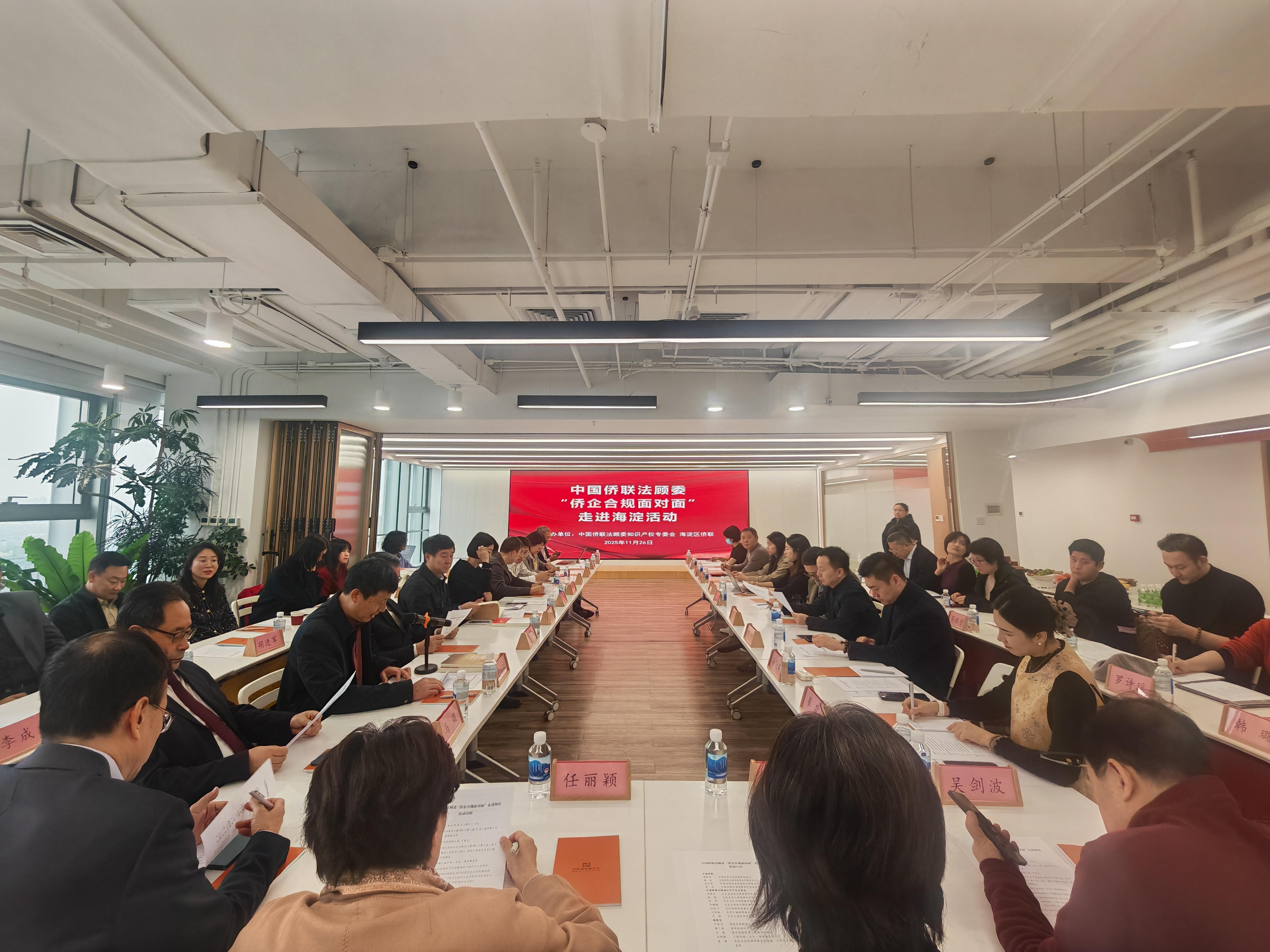 为贯彻党的二十大和二十届历次全会精神,落实十一代会工作部署,发挥法顾委专业委员会作用,为侨企进行法治体检,抓前端、治未病,助力侨企合规发展,11月26日,由法顾委知识产权专委会、北京市海淀区侨联联合组织的“法顾委‘侨企合规面对面’走进海淀活动”在高科技侨企聚集的中关村鼎好大厦举行。