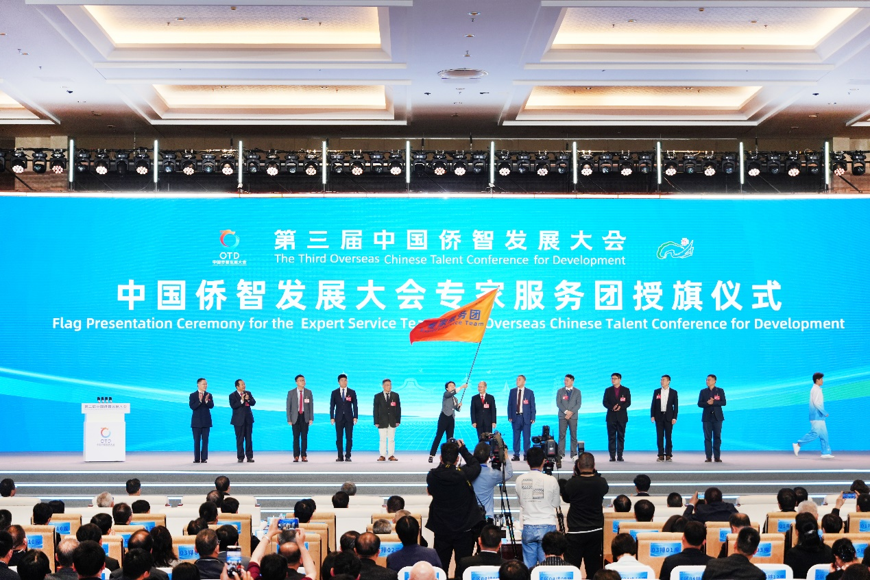 开幕式上,副主席程红为“中国侨智发展大会专家服务团”授旗。