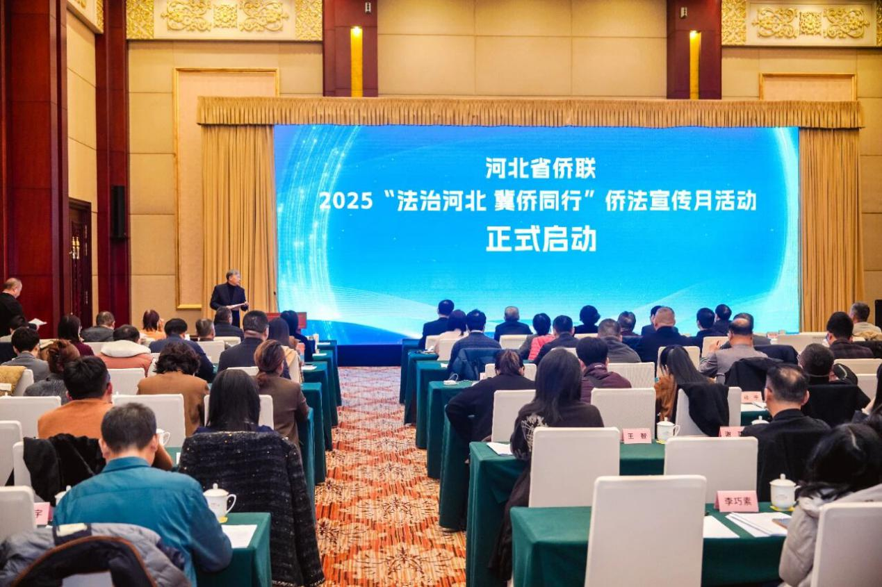 今年12月4日是第十二个国家宪法日,为全面贯彻落实党的二十大和二十届历次全会精神,深入学习宣传贯彻习近平法治思想和习近平总书记关于宪法的重要论述,做好“八五”普法收官工作,4日上午,由指导,河北省侨联主办的2025“法治河北 冀侨同行”侨法宣传月活动在石家庄正式启动。权益保障部副部长(主持工作)徐友佳,河北省司法厅副厅长、省侨联法顾委主任梁洪杰,河北省法院立案庭庭长冯永军,河北省检察院第一检察部二级高级检察官刘文海,河北省政协港澳台侨和外事委员会副主任、分党组书记董鹏,省侨联党组成员、副主席任卓平,全国人大代表、省侨联兼职副主席武志永参加了启动仪式。河北省侨办、公安厅、数政局、法院、检察院、人大民侨外工委、贸促会等相关部门负责同志,在石侨界人大代表、政协委员,省侨联委员、省侨联法顾委委员,以及海内外侨界代表共约120人参加了活动。