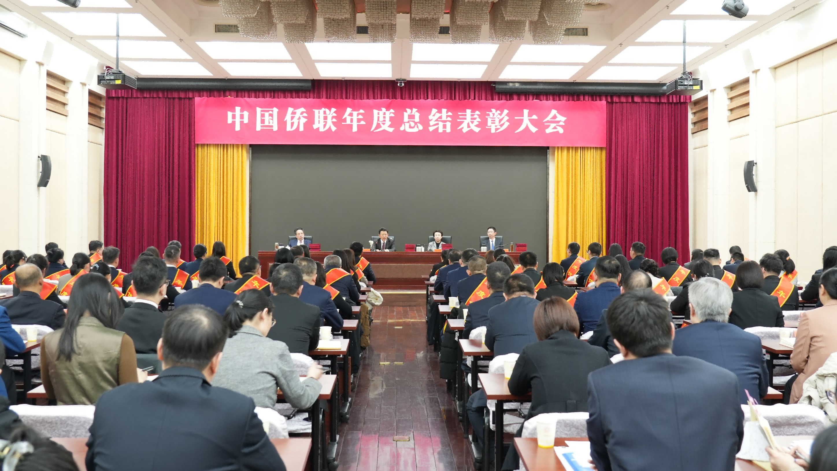 2026年2月11日下午,召开年度总结表彰大会。会议以习近平新时代中国特色社会主义思想为指导,总结回顾2025年工作,表彰先进集体和个人,在辞旧迎新的新起点上,进一步明确方向、凝聚共识、鼓舞士气,推动全体侨联干部以更加昂扬的斗志、更加务实的作风,再接再厉、再立新功。党组书记、主席王灵桂出席会议并讲话,副主席程红主持会议,党组成员、副主席连小敏、高峰分别宣读有关表扬通报,全体会领导为受表彰先进集体代表和年度优秀个人颁奖。